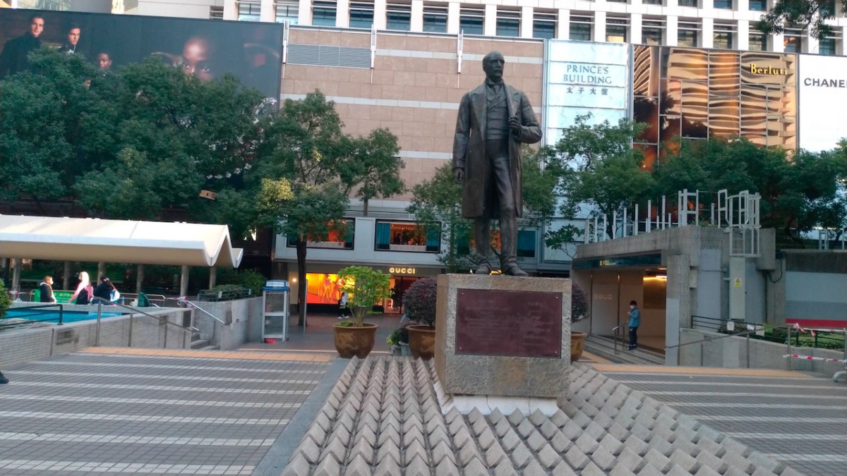 皇后像廣場上原本有九座巨型銅像,當年繼皇后像建立後,不斷有其他皇室成員,甚至港督的銅像樹立,亦為了表揚香港上海匯豐銀行總經理昃臣爵士對香港經濟的貢獻,他的銅像於一九零六年獲安放於廣場之內,由匯豐銀行捐立。香港日治時期,皇后像廣場中的女王銅像被日軍運往日本,準備熔掉成為製造武器的原料。二戰結束後,英政府尋回愛德華七世伉儷(其後運返英國)、維多利亞女王及昃臣爵士的銅像。而維多利亞女王銅像運回重置於維多利亞公園,昃臣爵士銅像則重置於皇后像廣場南面。亦由面向改為側身向匯豐。至於昃臣爵士銅像重置後底部出現三角尖,相傳是與六七十年代神秘失蹤案有關。話說當時皇后像廣場,附近經常有人失蹤,警方無法尋獲失蹤人士,有部份坊眾認為,起因是皇后像廣場上的昃臣爵士銅像。有街坊說曾經見過昃臣爵士銅像從高台跳下來,在地面上走來走去,似乎是要尋找獵物 。於是請了有術之士,在這昃臣爵士銅像的高台的底部四邊,佈下三角尖,阻止銅像跳下來。據說中環一帶附近再沒有人經常失蹤,反而只會對昃臣爵士銅像底部三角尖產生疑問。